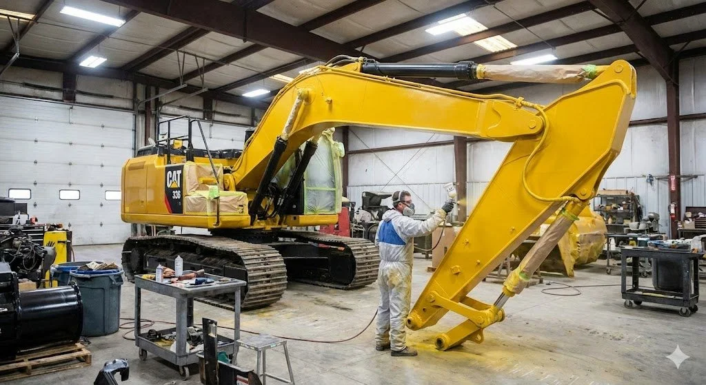 Once the structural work is locked in, your equipment enters our commercial-sized downdraft paint booth. Through rigorous sandblasting, meticulous surface prep, and precise fleet color-matching, we lay down high-durability industrial coatings. This isn't just about making your rig look good—it is about applying a rock-solid, rust-resistant shield that protects your investment from brutal daily abrasion and maximizes its resale value.